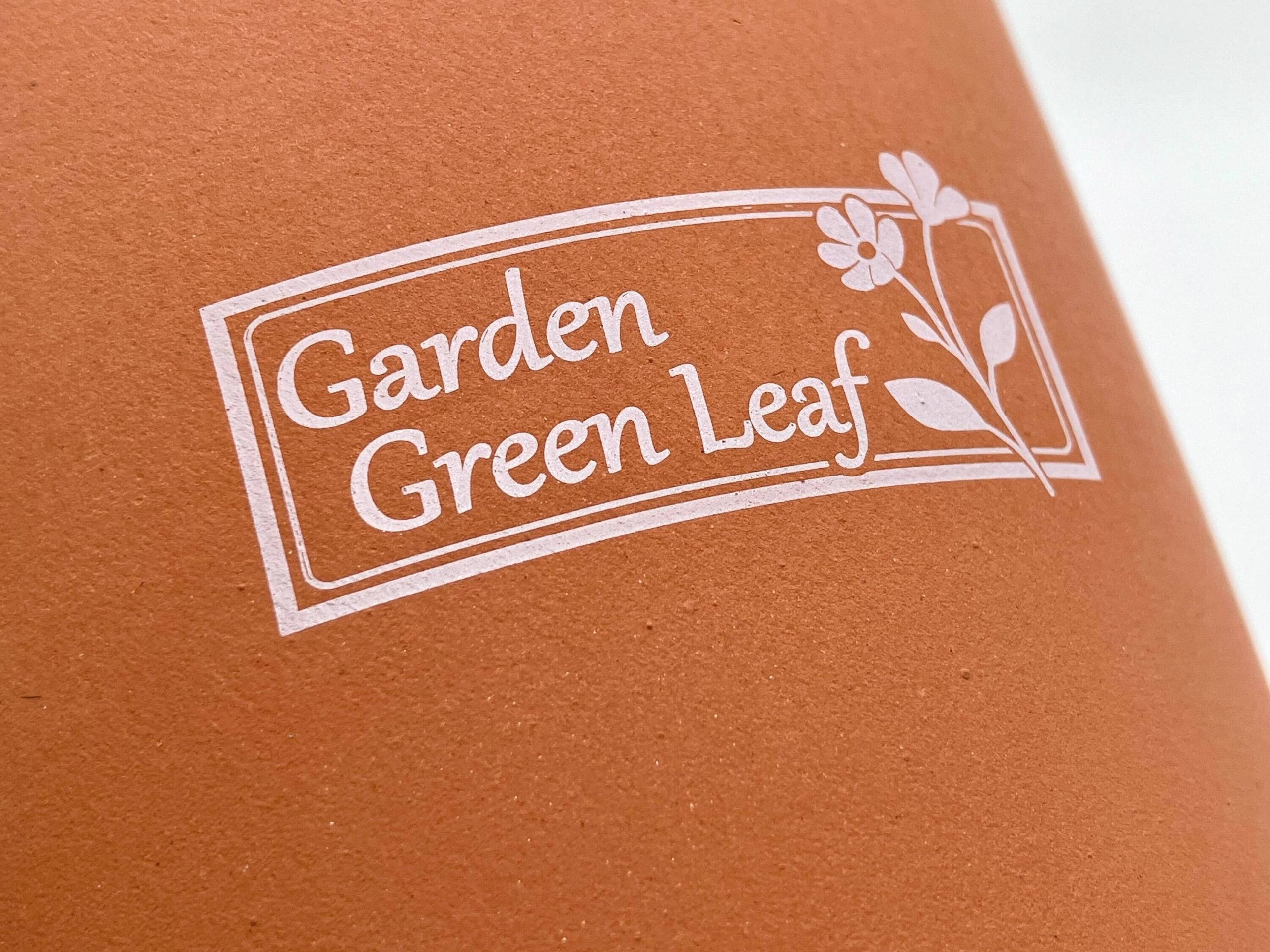 受け皿の底には、園芸店のロゴをイメージしたオリジナルデザインを印刷しています。